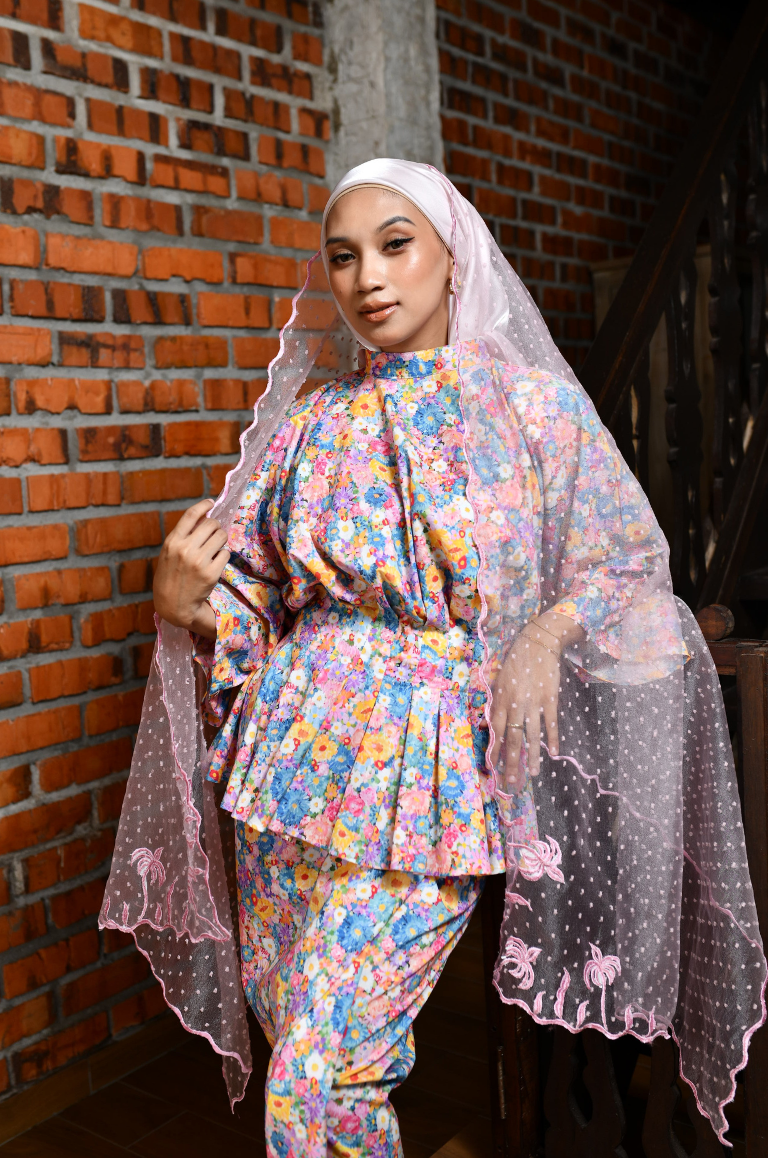 Our new Nostalgia Raya Selendang is soft and lightweight. Made of high quality of silky silk organdy, it has beautiful flow and long-lasting comfort when worn.